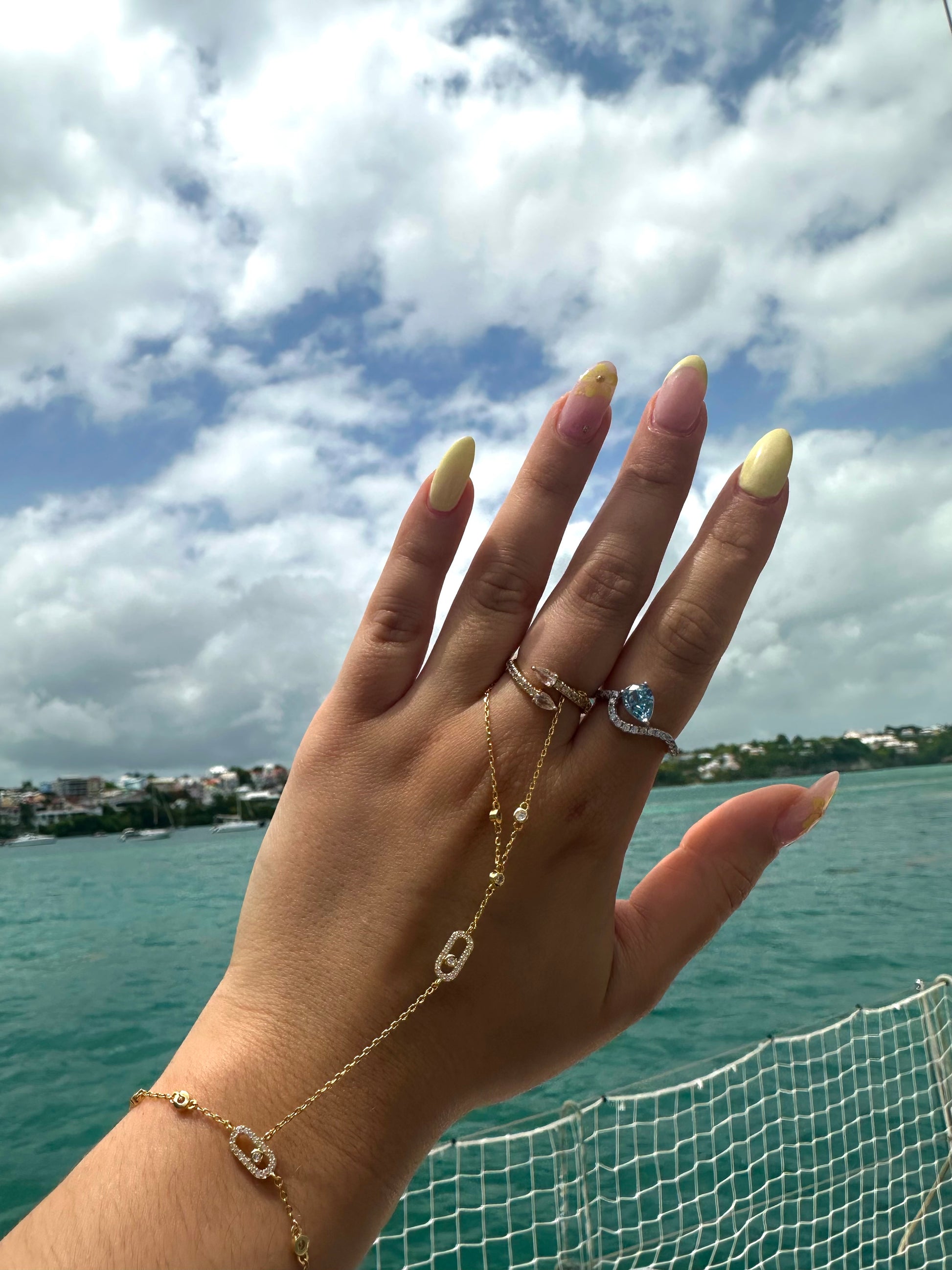We recommend our yellow gold pieces be taken off while showering as the plating is only 0.5 microns thick- hence the affordable price tag! Yellow gold pieces can fade to a silvery color if worn in the shower daily on a longer term.